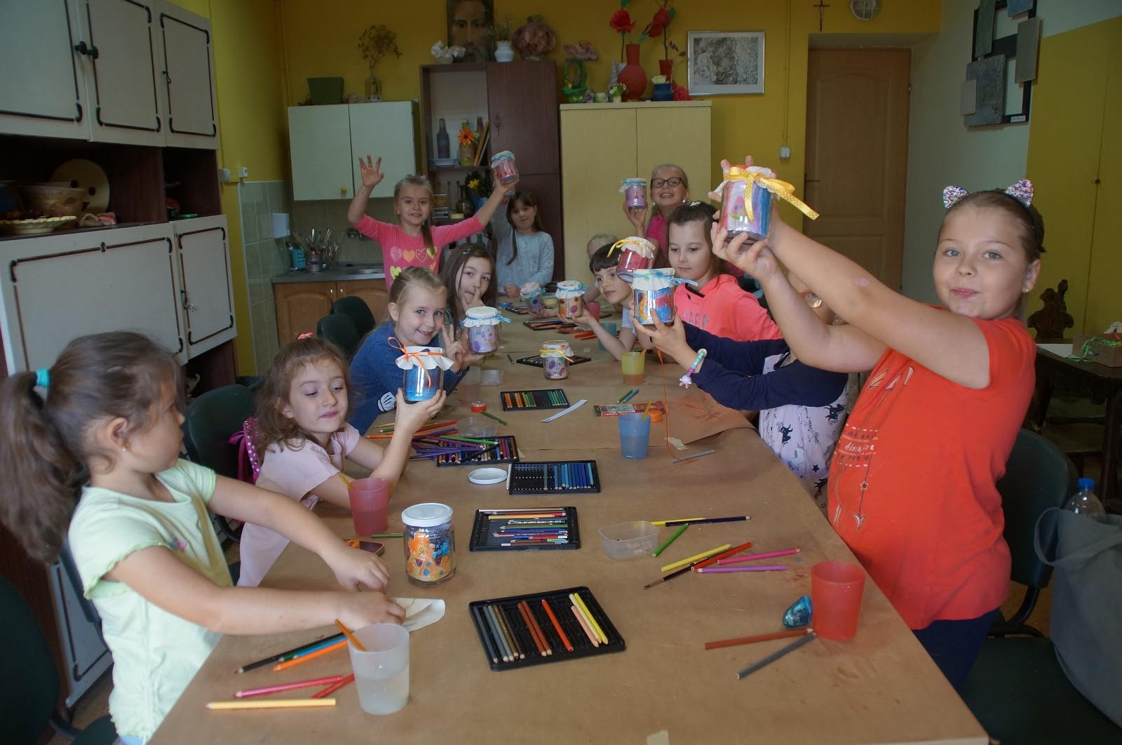 Zajęcia plastyczne w GOK rozpoczęte. W dniu 28 września 2019 roku w pracowni plastycznej dzieci wykonywały przetwory. Kompoty i soki malinowe, wiśniowe, jagodowe, morelowe, gruszkowe, jabłkowe. Były to przetwory ale malowane za to w prawdziwych szklanych słoikach z zakrętkami. Powstały ciekawe kompozycje do ozdoby kuchni. Gratuluję!